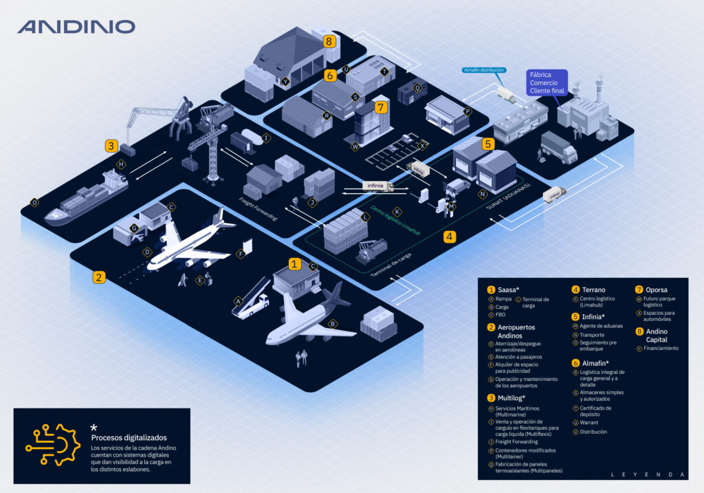 Ser el mejor operador logístico del Perú especializado en brindar servicios integrales a la medida dentro del sector del comercio exterior, respaldados por Andino con amplia experiencia en el ramo de operaciones logísticas, de infraestructura y financiera.